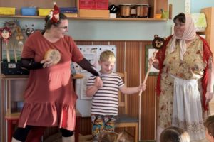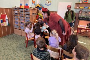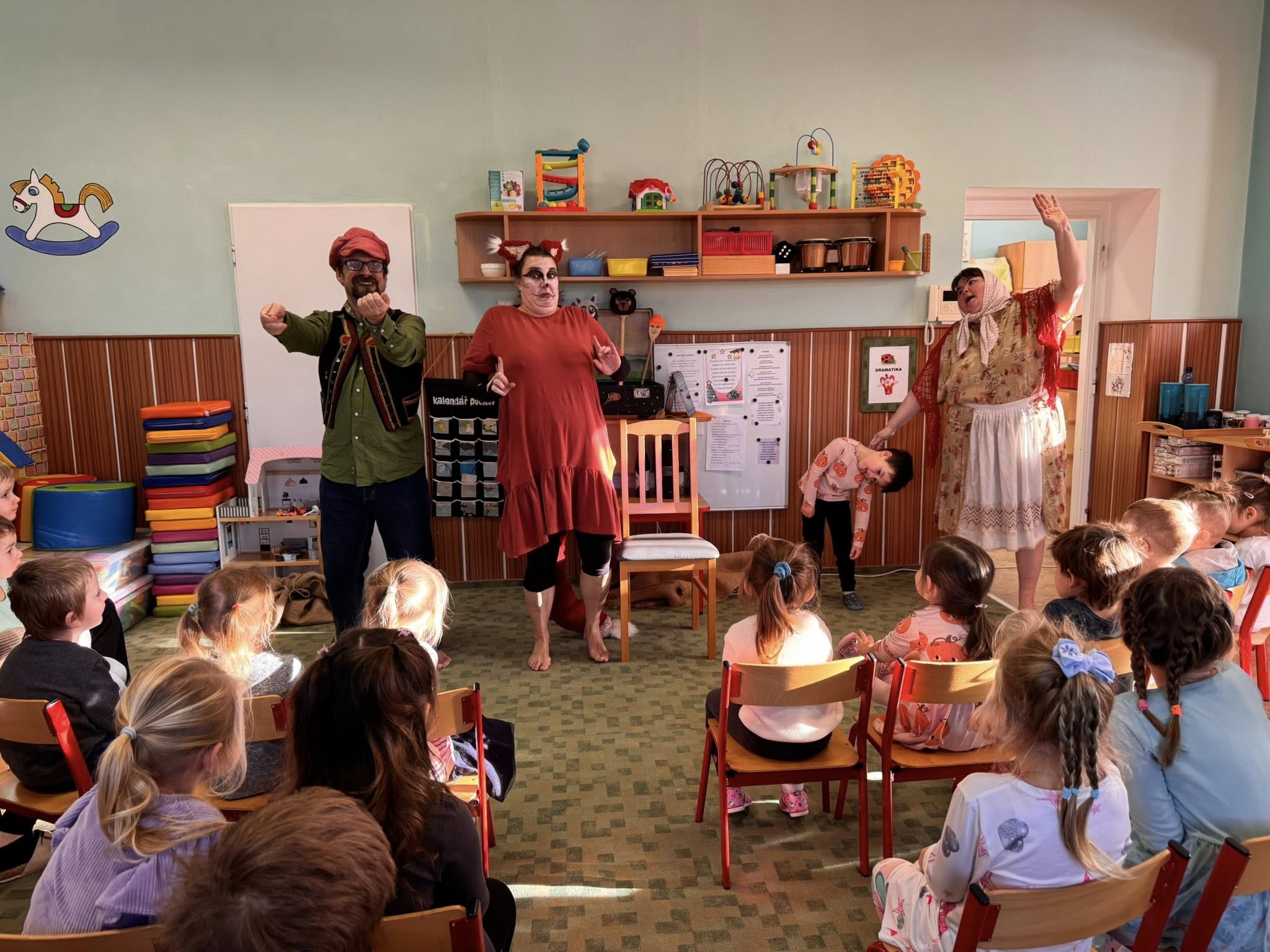 Navštívili nás herci divadla Klauniky z Brna, kteří nám zahráli pohádku O Koblížkovi a O Budulínkovi. Děti nejen pohádky sledovaly, ale také nezahálely, a byly aktivně vtaženy do děje 🙂